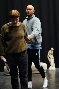 Regissør Vibeke tar en aktiv rolle, og følger nøye med mens skuespillerne portretterer vanskene ved å jobbe som sexarbeid. For i den typen arbeid er ikke linjene alltid like klare. Det har Vibeke også sett under kildearbeidet til forestillingen.