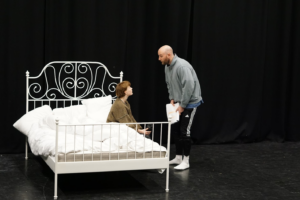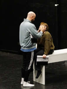 Skuespillerne Tuva Svendsen og André Olsen Lassemo setter i gang en scene for Unikums journalist. Det er en gripende scene hvor hovedpersonen Maria får følelser for kunden sin, og velger å åpne seg for ham.