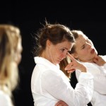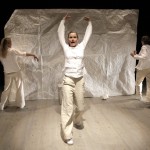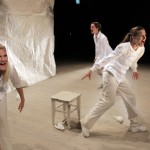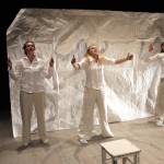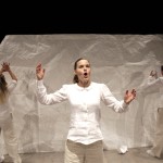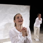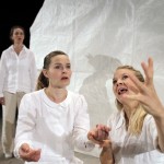 Det er en enkel scenografi som møter publikum. Et hvitt rektangulært bakteppe, en krakk og noen papirfigurer satt rammen for den times lange forestillingen. Nøytralt kledd i hvitt geleider de tre skuespillerinnene publikum gjennom en oppsetting med fokus på ordene og historien.